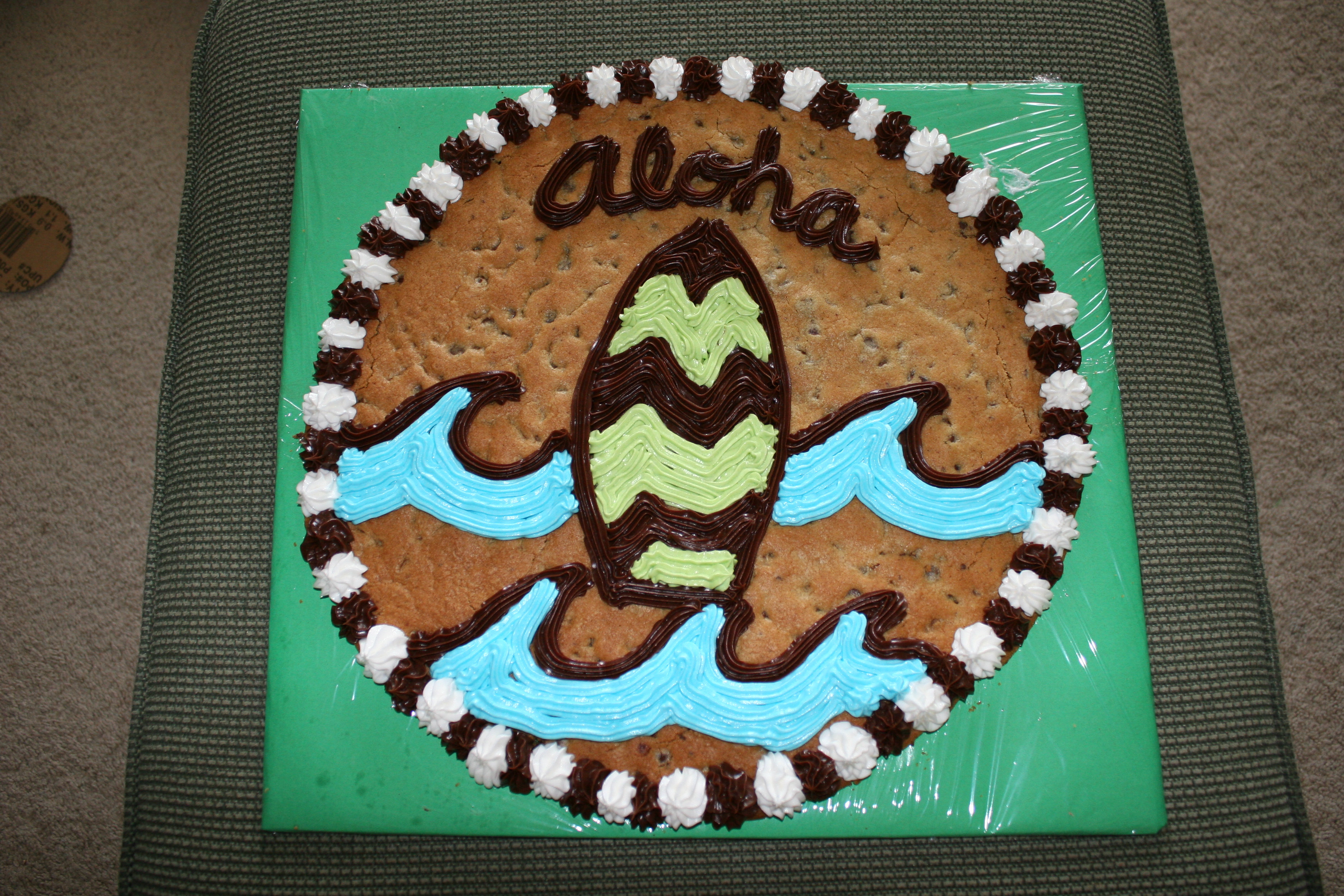 Something happened to the cookie cake I made the day before the event. So, right before the luau I was left to make another. I think it turned out better. It was definitely gobbled up.