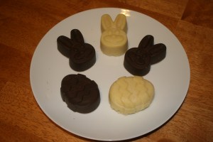I tried both white chocolate and regular chocolate. They looked cute, but the taste wasn’t quite right. My daughter was thrilled to have a chocolate bunny for Ostara, though. I’ll have to work on the recipes a bit.