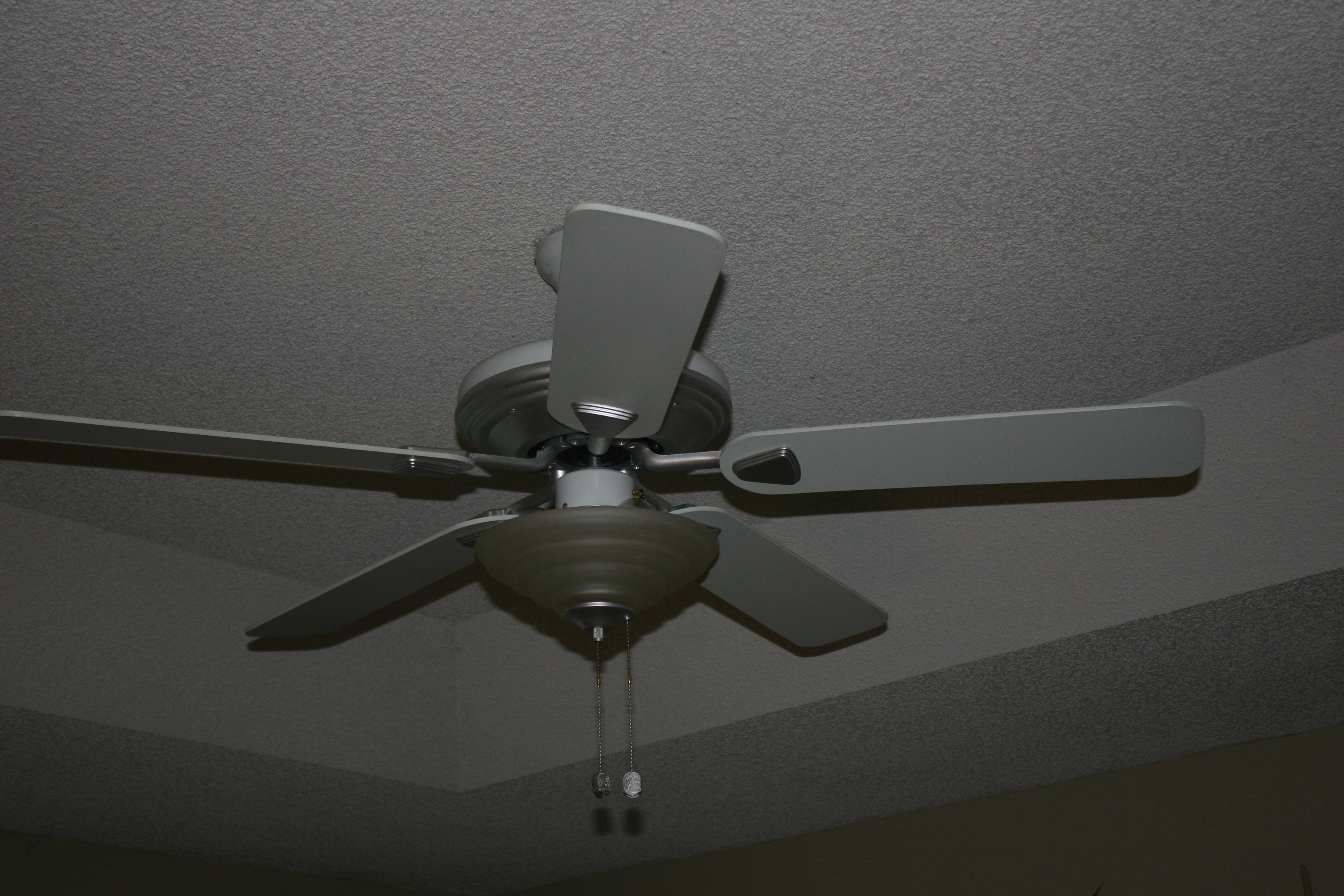 Our house was built in the mid-90’s with a lot of building materials from the 1980’s. While we have replaced lighting and I am preparing to paint the cabinets and trim in an attempt to remove their golden oak glory, the ceiling fan has also been a source of contention.