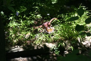 I recently took my children to one of the local botanical gardens. They were having a dinosaur exhibit throughout the park.
