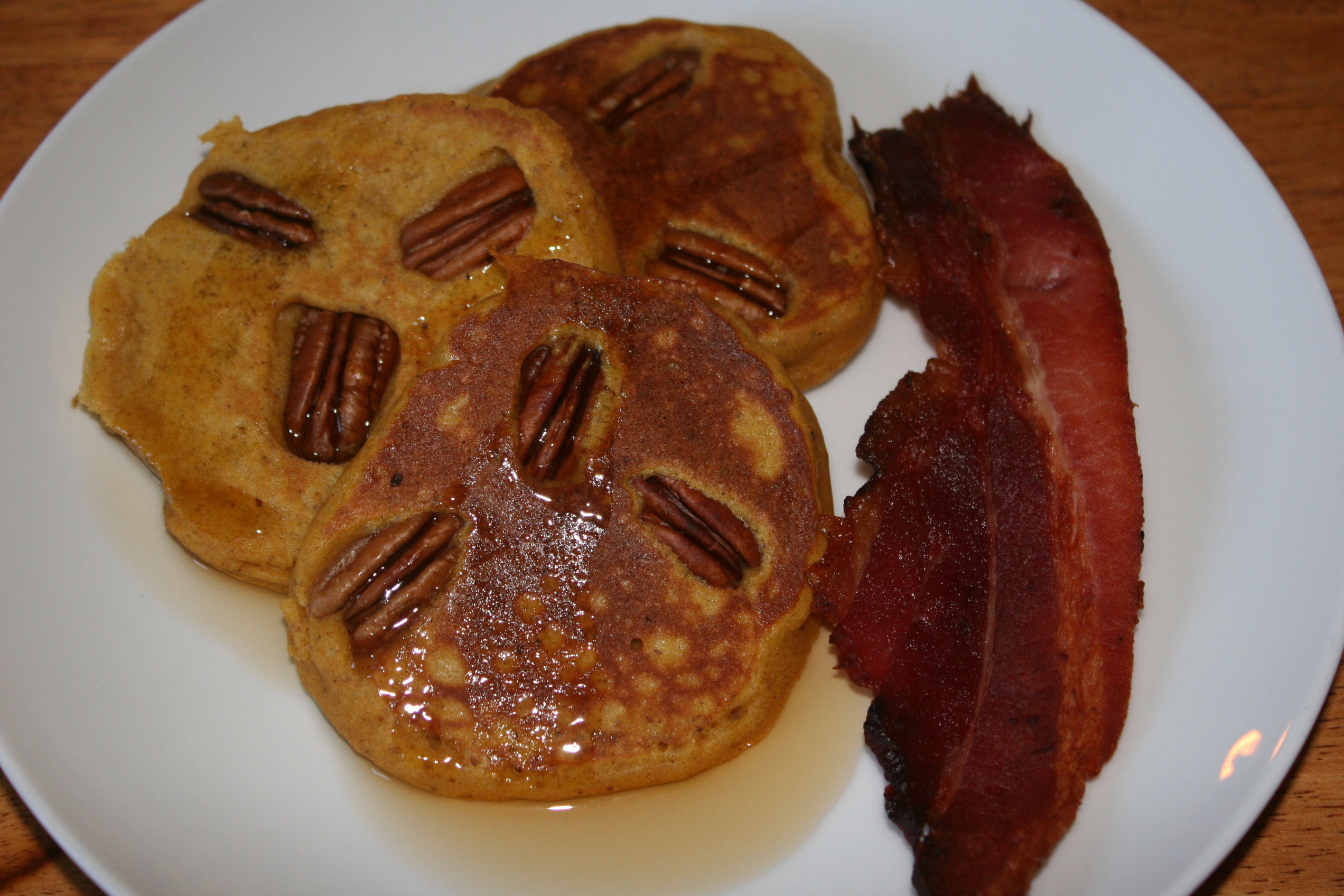 The beginning of October had me excited for Fall. So, before heading out for Fall activities that first weekend, I made some pumpkin pecan pancakes, which I paired with some thick sliced bacon from the home-grown pig we purchased. It could be the fact that I used some wheat flour which my husband had brought in the house, as we hadn’t had pancakes with gluten for a very long time, but everyone in my family exclaimed these to be the best pancakes ever. Now I just need to tweak them to be gluten free.
