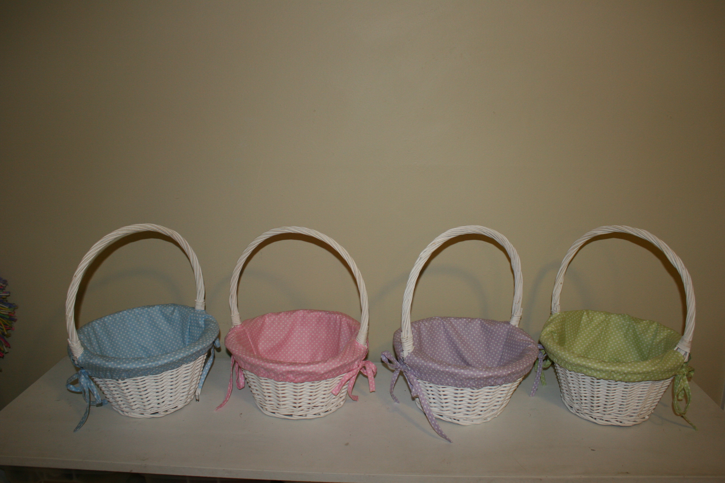 This year I did finally make new liners for them to replace the old ones. I had something different in mind, but my children liked the spring colors with white polka dots. With cloth liners, there is no need to even consider the horrible plastic grass we had as kids (not that you would anyway).