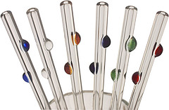 to set a straw down on a flat surface without fear that it may roll off. As they are different colors, there is no more question to whom a glass belongs. Glass Dharma offers sets with 4 or 6 colors (as well as individual straws), perfect for many families. We have ordered a set decorative for our family of 6 to enjoy.