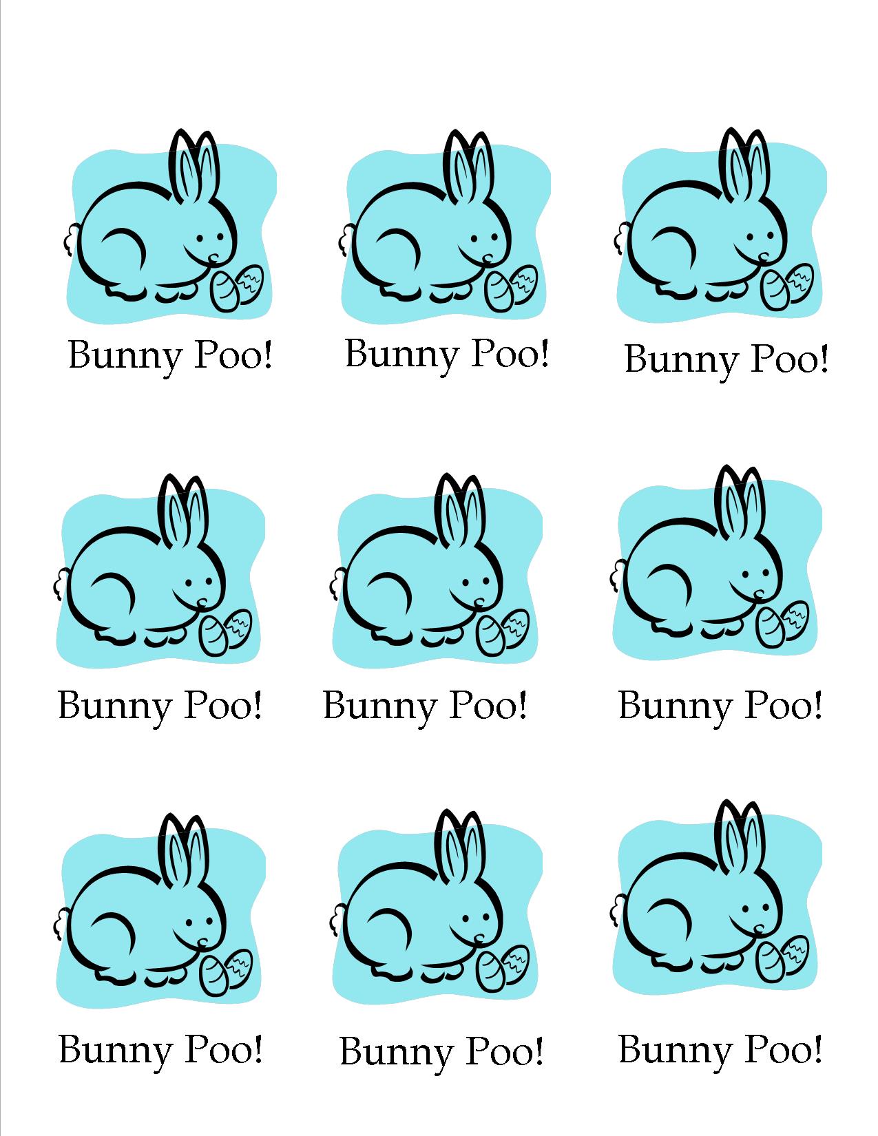 Click here for a free printable version of the Bunny Poo! labels. Just print out the page, cut them out, punch a hole, and attach to your own bag of “bunny poo.”