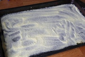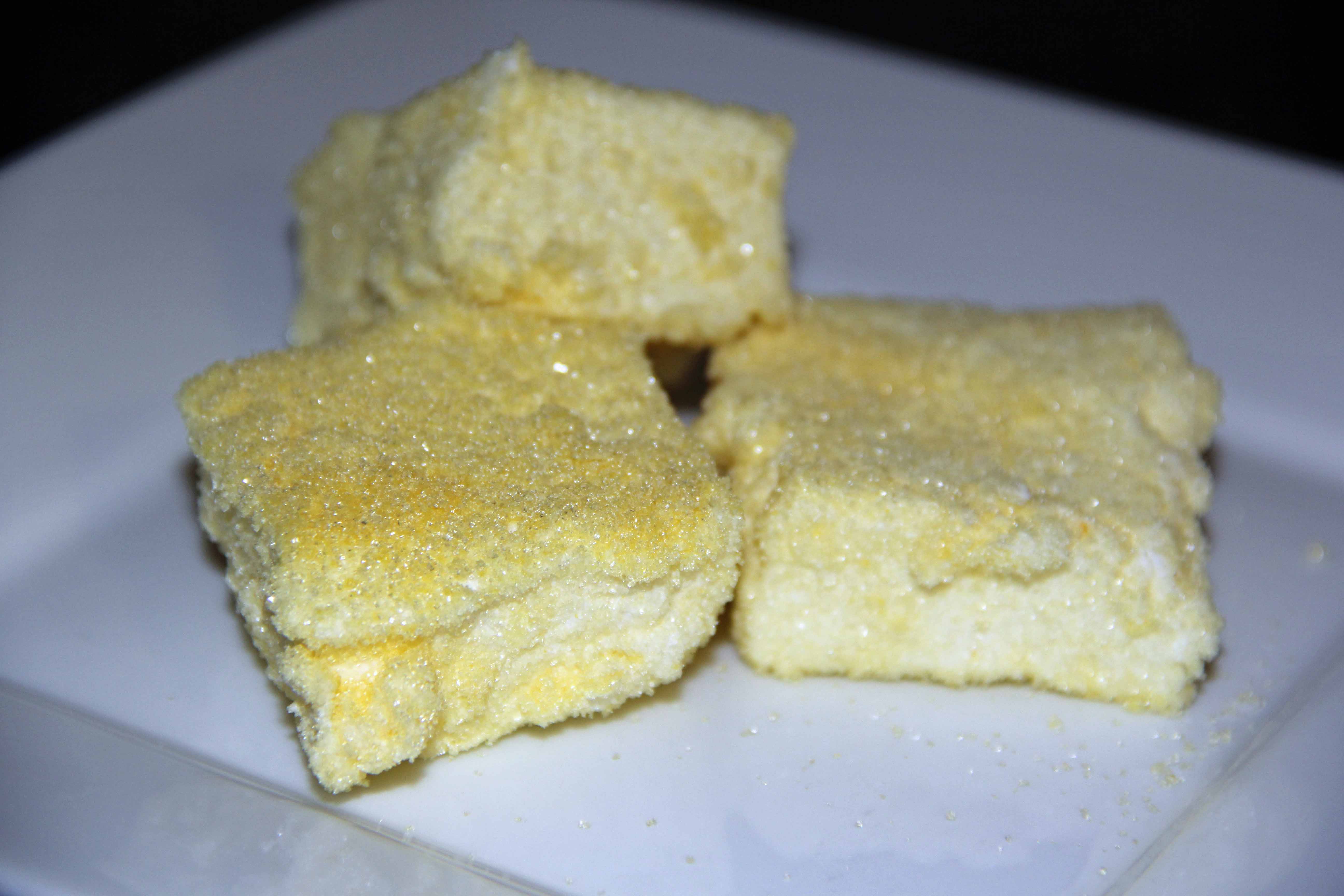 We made our marshmallow cream, making certain to beat it in the mixer for a really long time. Then we put it into a wax paper icing tube (yes, I make my own out of wax paper), and proceeded to pipe out cute little birds. Said cute little birds then proceeded to slowly spread out, resembling blobs. At that point, I tried on a chirpy little voice (the birds weren’t chirping) and stated, “Square Peeps will taste just as good!” We then spread out the remaining cream on the sugar, coated it with more sugar, and waited for it to set up before cutting it into squares and then dipping the edges in the sugar. Yes, just reading that makes my stomach hurt.